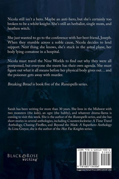 "Buhrman has created a marvelous world that is like The Dresden Files meets American Gods!" -Sable Aradia, author of The Witch's Eight Paths of Power Nicola still isn't a hero. Maybe an anti-hero, but she's certainly too broken to be a white knight. She's still an herbalist, single mom, and heathen witch. She just wanted to go to the conference with her best friend, Joseph. When they stumble across a noble cause, Nicola decides to lend support. Next thing she knows, she's stuck in the astral plane, her body lying comatose in a hospital. Nicola must travel the Nine Worlds to find out why they were all postponed, but everyone she meets has their own agenda. She must figure out what it all means before her physical body gives out... and the poisoner gets away with murder. Breaking Bread is book five of the Runespells series.