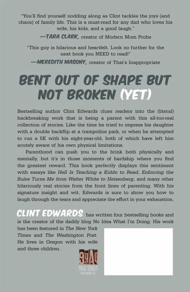 Bent Out of Shape But Not Broken (Yet) Bestselling author Clint Edwards clues readers into the (literal) back-breaking work that is being a parent with this all-too-real collection of stories. Like the time he tried to impress his daughter with a double back flip at a trampoline park or when he attempted to run a 5K with his 8-year-old, both of which have left him acutely aware of his own physical limitations. Parenthood can push you to the brink both physically and mentally, but it's in those moments of hardship where you find the greatest reward. This book perfectly displays this sentiment with essays like Hell is Teaching Your Kiddo How to Read, Enforcing the Rules Turns me From Walter White to Heisenberg, and many other hilariously real stories from the front lines of parenting. With his signature insight and wit, Edwards is sure to show you how to laugh through the tears and appreciate the effort in your exhaustion.