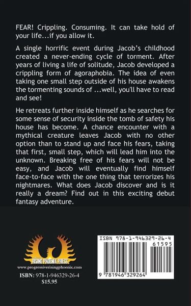 FEAR! Crippling. Consuming. It can take hold of your life...if you allow it. A single horrific event during Jacob's childhood created a never-ending cycle of torment. After years of living a life of solitude, Jacob developed a crippling form of agoraphobia. The idea of even taking one small step outside of his house awakens the tormenting sounds of ...well, you'll have to read and see! He retreats further inside himself as he searches for some sense of security inside the tomb of safety his house has become. A chance encounter with a mythical creature leaves Jacob with no other option than to stand up and face his fears, taking that first, small step, which will lead him into the unknown. Breaking free of his fears will not be easy, and Jacob will eventually find himself face-to-face with the one thing that terrorizes his nightmares. What does Jacob discover and is it really a dream? Find out in this exciting debut fantasy adventure.