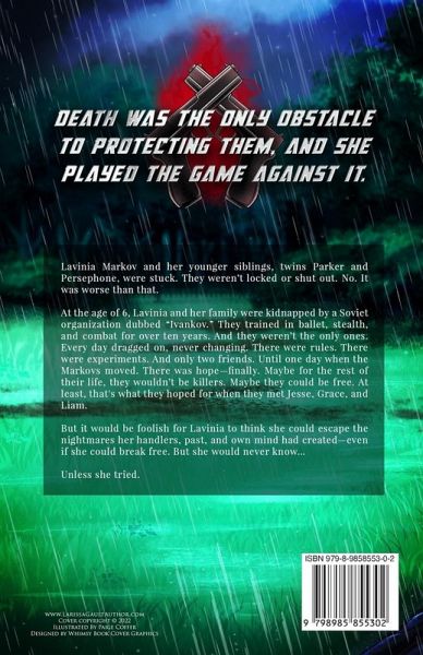 Lavinia Markov and her younger siblings, twins Parker and Persephone, were stuck. They weren't locked or shut out. No. It was worse than that. At the age of 6, Lavinia and her family were kidnapped by a Soviet organization dubbed "Ivankov." They trained in ballet, stealth, and combat for over ten years. And they weren't the only ones. Every day dragged on, never changing. There were rules. There were experiments. And only two friends. Until one day when the Markovs moved. There was hope-finally. Maybe for the rest of their life, they wouldn't be killers. Maybe they could be free. At least, that's what they hoped for when they met Jesse, Grace, and Liam. But it would be foolish for Lavinia to think she could escape the nightmares her handlers, past, and own mind had created-even if she could break free. But she would never know... Unless she tried.