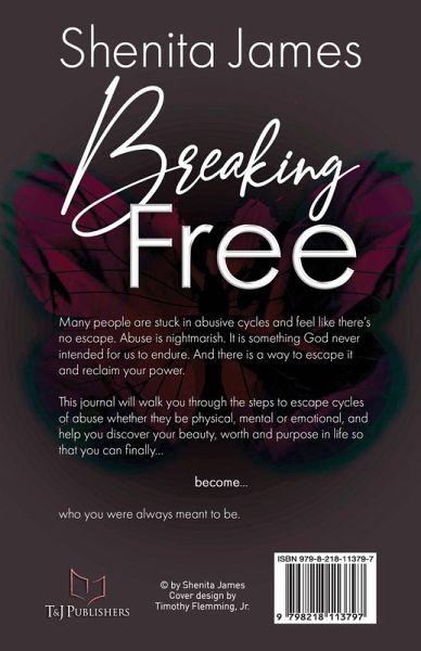 Many people are stuck in abusive cycles and feel like there's no escape. Abuse is nightmarish. It is something God never intended for us to endure. And there is a way to escape it and reclaim your power. This journal will walk you through the steps to escape cycles of abuse whether they be physical, mental or emotional, and help you discover your beauty, worth and purpose in life so that you can finally become who you were always meant to be. Discover how to... Process and release the pain of your past so you can get on with your life Transform your pain into purpose and pave your own path to success Change your negative self- perception and overcome the limiting beliefs sabotaging your life Recover from the devastating effects of abuse and trauma and reclaim your confidence and power