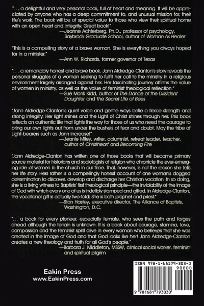 Jann Aldredge-Clanton didn't start out as a reformer. When she was a pre-teen, she almost starved herself to death trying to fit into the culture's feminine mold. In high school she felt inadequate because she never won a beauty crown, even though she graduated at the top of her class. Slowly, she began waking up to her own voice, and became one of the first women ever to be ordained as a Baptist minister in the South. It has not been an easy road. She almost lost her job as a professor at a Baptist university because she refused to sign a fundamentalist statement of beliefs. She was labeled a "heretic" for calling God "She" and "Mother." Others said she couldn't be an ordained minister because it would be "unbiblical." The controversy over women's roles in religion was just another example of the glass ceiling women too often face in American society. Called "Waco's Give 'Em Hell Minister" for her outspoken opinions and action on social issues, Jann divulges in Breaking Free how she discovered her mission of freeing people, including herself, from sexism and other injustices. Breaking Free is a remarkable memoir that shows the liberating power of faith combined with feminism. It will inspire readers of all ages to find the freedom to become all God created them to be.