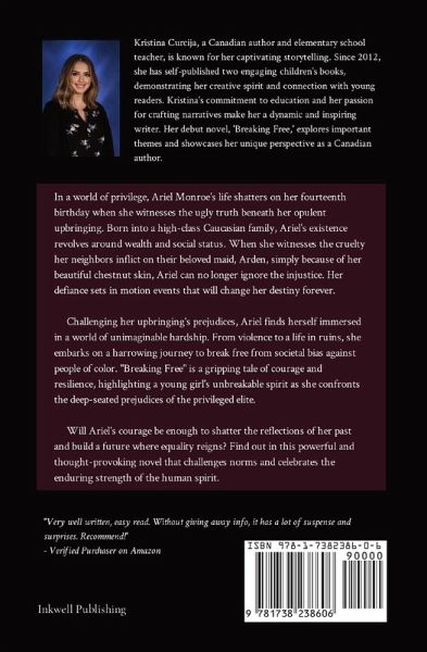 In a world of privilege and prejudice, Ariel Monroe's life is shattered on her fourteenth birthday when she witnesses the ugly truth beneath the opulence. Born into a high-class Caucasian family, Ariel's world is a realm of privilege and extravagance, where wealth and social standing are everything. But when she sees the cruelty her neighbors inflict on their beloved maid, Arden, simply because of her beautiful chestnut-colored skin, Ariel can no longer turn a blind eye to the injustice. Her act of defiance sets off a chain of events that will alter her destiny forever. As Ariel challenges the prejudices of her upbringing, she finds herself immersed in a world of pain and hardship she never could have imagined. From from enduring violence to a life in ruins, she undergoes a harrowing journey to break free from the oppressive societal views of people of color. Breaking Free is a gripping tale of courage, resilience, and the unbreakable spirit of a young girl determined to confront the deep-seated prejudices of the privileged elite. With every turn of the page, readers will be drawn into Ariel's journey of self-discovery and her relentless fight for justice in a world where privilege and power often silence the voices of those who need them most. Will Ariel's courage be enough to shatter the reflections of her past and build a future where equality reigns? Find out in this powerful and thought-provoking novel that challenges societal norms and illuminates the enduring strength of the human spirit.