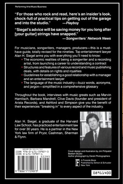 From Simon & Schuster, Breaking into the Music Business is Alan Siegel's inside advice from a top entertainment lawyer on how to find the right manager, make a demo that sells you, and more. Surveys the history of the music industry, and uses interviews to describe the experience of songwriters, recording artists, and managers, and how they got their start.