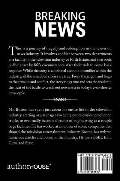 This is a journey of tragedy and redemption in the television news industry. It involves conflict between two departments at a facility in the television industry or Fifth Estate, and two souls pulled apart by life's circumstances start their trek to come back together. While the story is a fictional account of conflict within the industry, all the anecdotal stories are true. From the jargon and lingo to the tension and conflict, the story rings true and sets the reader in the heat of the battle to crank out newscasts in today's ever-shorter news cycle.
