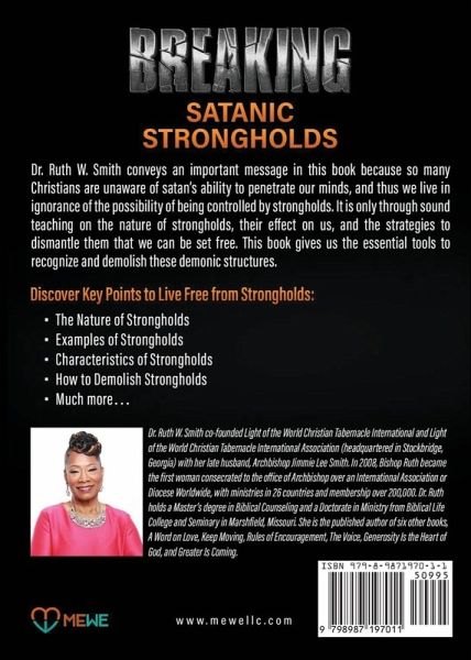 This book by Dr. Ruth W. Smith conveys an important message because so many Christians are unaware of satan's ability to penetrate our minds, and thus we live in ignorance of the possibility of being controlled by strongholds. It is only through sound teaching on the nature of strongholds, their effect on us, and the strategies to dismantle them that we can be set free. This book gives us the essential tools to recognize and demolish these demonic structures.