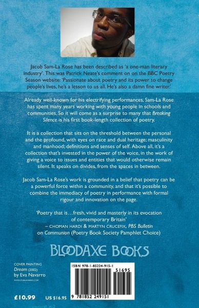 Jacob Sam-La Rose was born in London in 1976. He was managing director of a web development studio before becoming a freelance writer and editor. He is the Artistic Director of the London Teenage Poetry SLAM, Editor-in-Chief of Metaroar.com, and an editor for flipped eye press. He also facilitates a range of literature-in-education, creative writing and spoken word programmes through schools, arts centres and other institutions. His work has appeared in many anthologies and journals, including Identity Parade: New British & Irish Poets (Bloodaxe), Poems For Love (Penguin), I Have Found a Song (Enitharmon Press), Red (Peepal Tree), Learn Then Burn: The Ultimate Poetry Guide for the High School or College Classroom (Write Bloody) and Michael Rosen's A-Z: The Best Children's Poetry from Agard to Zephaniah (Puffin). His pamphlet Communion was a Poetry Book Society Pamphlet Choice in 2006. Breaking Silence (Bloodaxe Books, 2011), his first book-length collection, was shortlisted for both the Forward Prize for Best First Collection and the Fenton Aldeburgh First Collection Prize 2012.