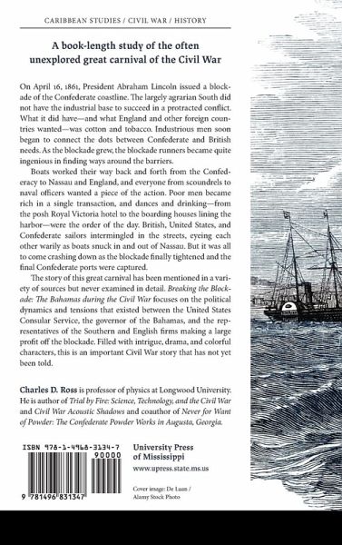 On April 16, 1861, President Abraham Lincoln issued a blockade of the Confederate coastline. The largely agrarian South did not have the industrial base to succeed in a protracted conflict. What it did have--and what England and other foreign countries wanted--was cotton and tobacco. Industrious men soon began to connect the dots between Confederate and British needs. As the blockade grew, the blockade runners became quite ingenious in finding ways around the barriers. Boats worked their way back and forth from the Confederacy to Nassau and England, and everyone from scoundrels to naval officers wanted a piece of the action. Poor men became rich in a single transaction, and dances and drinking--from the posh Royal Victoria hotel to the boarding houses lining the harbor--were the order of the day. British, United States, and Confederate sailors intermingled in the streets, eyeing each other warily as boats snuck in and out of Nassau. But it was all to come crashing down as the blockade finally tightened and the final Confederate ports were captured. The story of this great carnival has been mentioned in a variety of sources but never examined in detail. Breaking the Blockade: The Bahamas during the Civil War focuses on the political dynamics and tensions that existed between the United States Consular Service, the governor of the Bahamas, and the representatives of the southern and English firms making a large profit off the blockade. Filled with intrigue, drama, and colorful characters, this is an important Civil War story that has not yet been told.
