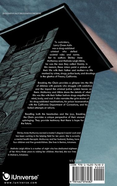 To outsiders, Larry Owen Azlin was a drug-addicted criminal who defied societal rules and norms. But to authors Shirley Anne McMurray and Melinda Leigh Alkire, he was the man they called Daddy. In this memoir, these sisters paint a picture of their life with their father and mother-a life marked by crime, drugs, police busts, and shootings in the ghettos of Fresno, California. Breaking the Chain provides a glimpse into the life of children with parents who struggle with addiction and the impact the criminal justice system leaves on them. McMurray and Alkire share the details of what life was like with their father before drugs engulfed his mind, body, and soul. It also narrates the grim stories of his drug-addicted machinations, his prison incarceration with the California Department of Corrections, and his failed attempts at reform. Recalling both the heartaches and the joys, Breaking the Chain provides a unique perspective of their unusual upbringing. They provide testimony that there is hope for the future.