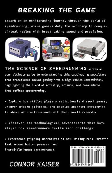 Unlock the Secrets Behind Gaming's Most Daring Subculture Step into the high-stakes world of speedrunning, where players don't just beat games-they dismantle them. Breaking the Game: The Science of Speedrunning is your all-access pass to the artistry, precision, and obsession that drive gamers to conquer virtual realms in record time. From pixel-perfect jumps to code-bending glitches, discover how speedrunners turn beloved classics like Super Mario Bros. and The Legend of Zelda into playgrounds of innovation. What's Inside? * What is Speedrunning?: An introduction to the art of completing games as quickly as possible and the unique culture surrounding it. * The Evolution of Speedrunning: Discover the historical milestones that shaped the speedrunning landscape, from early high-score competitions to the cooperative communities of today. * Classic Game Breakdowns: Detailed analyses of beloved games like The Legend of Zelda, Super Mario 64, and Minecraft, showcasing key glitches, techniques, and record-holding runners. * Communities and Collaboration: How players come together, sharing strategies and pushing the limits through live-streamed races and charity events. * The Future of Speedrunning: Insights into emerging technologies, artificial intelligence, and the evolving landscape of indie gaming that promise to reshape the way we play. Why Gamers Love This Book With a rich array of stories, strategies, and advancements in technology, Breaking the Game not only captures the thrill of competition but also highlights the ingenuity and collaborative spirit of the speedrunning community. Whether you're a seasoned player or new to the scene, this book will inspire you to appreciate the intricate world of speedrunning and perhaps pick up a controller yourself to start your own journey toward perfection. Join us as we unravel the science behind speedrunning and celebrate the artistry of gaming in a race against time!