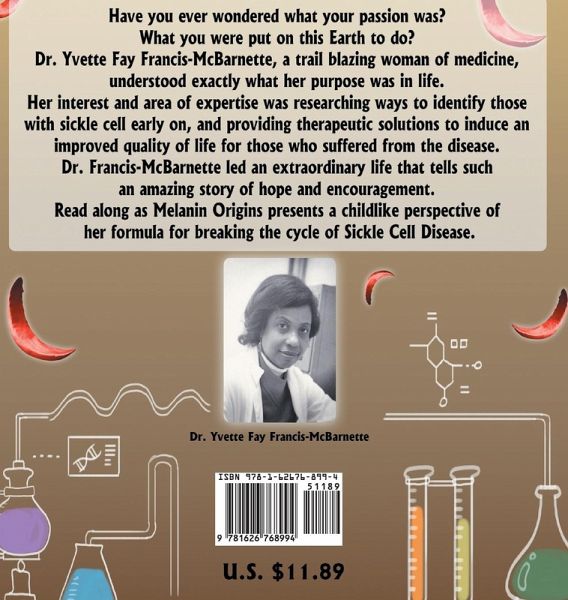 Breaking The Sickle is a snippet of the life of a pioneer pediatrician who saved and prolonged the lives of people battling sickle cell anemia; whose life's work became U.S. medical policy. Have you ever wondered what you were put on this Earth to accomplish? Dr. Yvette Fay Francis-McBarnette, a trail blazing woman in medicine, understood exactly what her purpose was in life. "Dr. Francis" led an extraordinary life that tells such an amazing story of hope, the bond of unity, and academic excellence. Read along as Melanin Origins presents a childlike perspective of her formula for breaking the cycle of Sickle Cell Disease.
