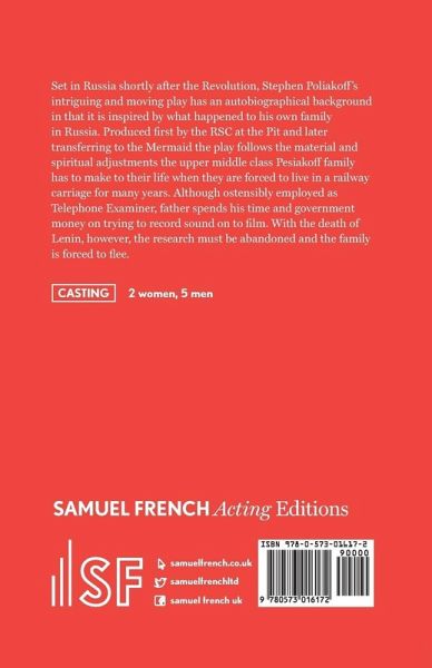 Set in Russia shortly after the Revolution, Stephen Poliakoff's intriguing and moving play has an autobiographical background in that it is inspired by what happened to his own family in Russia. Produced first by the RSC at the Pit and later transferring to the Mermaid the play follows the material and spiritual adjustments the upper middle class Pesiakoff family has to make to their life when they are forced to live in a railway carriage for many years. Although ostensibly employed as Telephone Examiner, father spends his time and government money on trying to record sound on to film. With the death of Lenin, however, the research must be abandoned and the family is forced to flee.