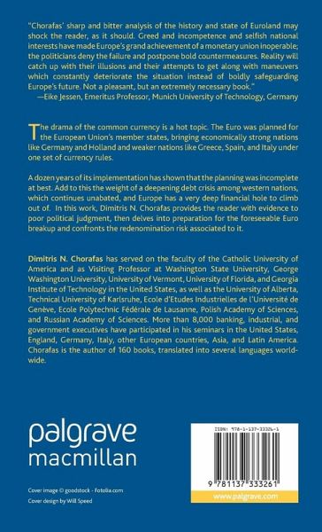 The drama of the common currency is a hot topic. The Euro was planned for the European Union's member states, bringing economically strong nations like Germany and Holland and weaker nations like Greece, Spain and Italy under one set of currency rules. A dozen years of its implementation has shown that the planning was incomplete at best. Add to this the weight of a deepening debt crisis among western nations, which continues unabated, and Europe has a very deep financial hole to climb out of. In this work, Dimitris N. Chorafas provides the reader with evidence to poor political judgment, then delves into preparation for the foreseeable Euro breakup and confronts the redenomination risk associated to it.
