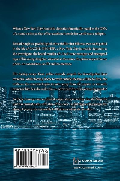 Breakthrough is a psychological crime thriller that follows a two-week period in the life of RACHE FISCHER, a New York City homicide detective as she investigates the brutal murder of a local store manager and attempted rape of his young daughter. Arrested at the scene, the prime suspect has no priors, no convictions, no ID and no memory. His daring escape from police custody propels the investigation into overdrive, whilst forcing Rache to work outside the law, as little by little, the evidence she uncovers begins to point away from the suspect, to not only exonerate him but also make him an active participant in solving the murder! As Rache journeys into uncharted waters, she soon realizes that the Suspect's past has crossed paths with that of her own - a past that set in motion the chain of events that eventually led Rache to where she is today...