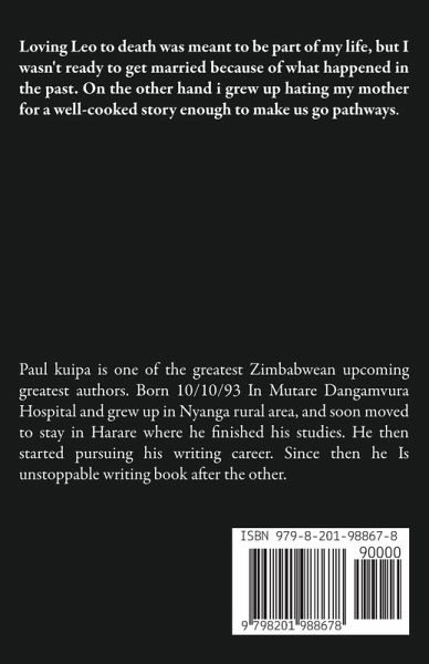 Paul Kuipa is one of the best upcoming Aurthors. Born in October in the year 1993, at Dangamvura in Mutare. Which is the second biggest city in Zimbabwe. He grew up in Nyanga in Chinhenga, one of the rural areas. Thats where he finished his primary grade and moved to Harare, the capital city. After his secondary level, he then moved to South Africa, Johannesburg to further his studies. And started his writting career at Unisa College. From there he is unstopped, publishing book after book.