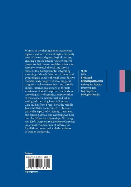 Burden of breast and gynecological cancers in low-resource communities.- Breast cancer: pathology, cytology, and core needle biopsy methods for diagnosis.- Gynecological cancers: pathology and cytological methods for diagnosis of gynecological cancers.- Screening and early diagnosis of breast cancer: proven methodology and an optimized strategy for developing countries.- HPV and cervical cancer.- Screening for cervical cancer in low-resource communities.- Ovarian cancer screening and early detection in low- and middle-income countries.- Endometrial cancer: risk factors and early diagnosis in low-resource countries.- Breast and gynecologic cancer prevention in low-resource countries.- Combined screening for breast and gynecological cancers using mobile clinics: the Barretos experience (Brazil).- Cost effectiveness of screening for and early diagnosis of breast and gynecological cancers in low-income countries.- Challenges for breast and gynecological cancer control by early detection in less-developed countries.- Funding for global health care intervention: initiatives aimed at controlling cancer in women in low-resource countries.- Coordinated training on early detection and diagnosis of breast cancer across different levels of health workers: an example from Peru.- Telemedicine in cancer control programs in developing countries. Breast cancer screening and cervical cancer prevention in developing countries: strategies for the future.- Well woman clinic concept: an integrated approach for screening and early diagnosis of breast and gynecological cancers in developing countries.