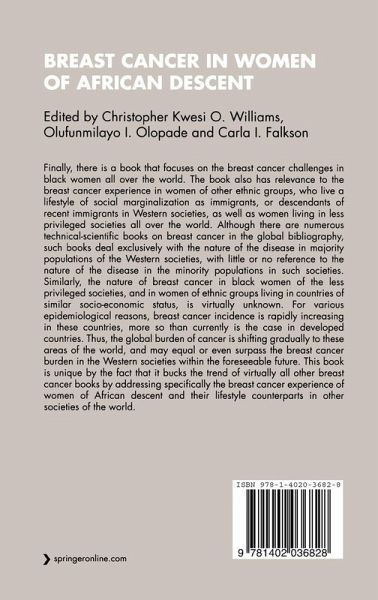 Although there are numerous technical-scientific books on breast cancer in the global bibliography, such books deal exclusively with the nature of the disease in majority populations of the Western societies, with little or no reference to the nature of the disease in the minority populations in such societies. Similarly, the nature of breast cancer in black women of the less privileged societies, and in women of ethnic groups living in countries of similar socio-economic status, is virtually unknown. For various epidemiological reasons, breast cancer incidence is rapidly increasing in these counties, more so than currently is the case in developed countries. Thus, the global burden of cancer is shifting gradually to these areas of the world, and may equal or even surpass the breast cancer burden in the Western societies within the foreseeable future. This book is unique because it bucks the trend of virtually all other breast cancer books by addressing specifically the breast cancer experience of women of African descent and their lifestyle counterparts in other societies of the world.