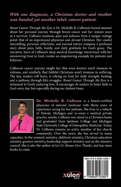 With one diagnosis, a Christian doctor and mother was handed yet another label: cancer patient. Breast Cancer Through My Eyes is Dr. Michelle B. Calhoun's honest memoir about her personal journey through breast cancer and her sixteen years as a survivor. Calhoun examines pain and sickness from a unique vantage point: that of an experienced physician and devout Christian. Her candid storytelling, personal reflections, and journal entries compose a profound story about pain, faith, family, and daily gratitude for God's grace. The narrative, born of Calhoun's deep medical knowledge intertwined with her unwavering trust in God, creates an empowering example for patients and believers. Calhoun's cancer journey taught her that even doctors aren't immune to sickness, and similarly, that faithful Christians aren't immune to suffering. The key, readers will learn, is relying on God for daily strength, healing, and a pathway through life's struggles. Breast Cancer Through My Eyes is a testament to God's enduring love. It encourages its readers to foster faith in God every day, but especially during our darkest times. Dr. Michelle B. Calhoun is a board-certified physician of internal medicine with thirty years of experience caring for her patients. She lives in a suburb of Detroit, Michigan and co-owns a medical private practice nearby. Calhoun was raised in a Christian home and graduated from Spelman College and Michigan State University College of Osteopathic Medicine. Today, Dr. Calhoun remains an active member of her church community. Over the years, she has served in many capacities: In the women's ministry, children's ministry, Christian-education ministry, greeters ministry, leadership support ministry and on the ministry council. She is also the author of Let Us Always Give Thanks, and has more books to come.