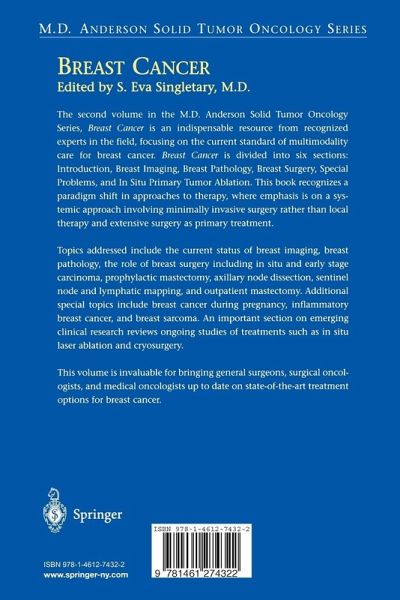 Breast Cancer, the second volume in the MD Anderson Solid Tumor Oncology series, this book provides the general surgeon, surgical oncologist, and medical oncologist with the state-of-the art multimodality care for breast cancer. Divided into five sections, the text brings the field's recognized esperts addressing the current status of breast imaging, breast pathology, the role of breast surgery including management of in situ and early stage carcinoma, prophylatic mastectomy, axillary node dissection, sentinel node and lymphatic mapping, and outpatient mastectomy, as well as coverage of special selected topics featuring breast cancer in pregnancy, inflammatory breast cancer and breast sarcoma. An important section on future research reviews on-going studies for the use of in situ laser ablation, cryosurgery, and translational research to bring the busy practitioner up-to-date on state-of-the art advances. This book is a must-have resource on the full specturm of current and prospective treatment options for this challenging disease.