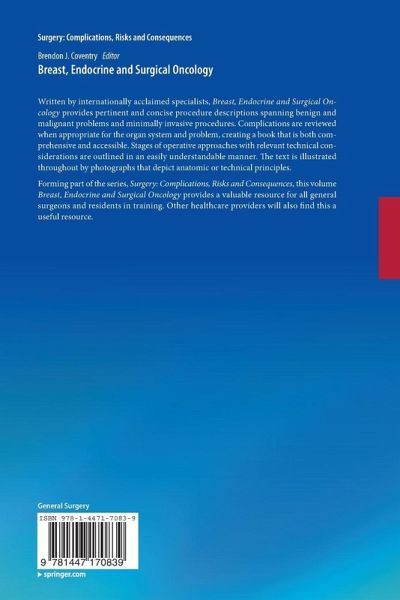 "This concise book focuses on complications, risks, and consequences of breast, endocrine, and other oncologic surgical procedures. ... The audience is surgeons currently in practice or surgical residents in training. The author is well known in the world of surgical oncology. ... The book also offers extensive further reading, references, and resources at the end of every subject. This is an excellent resource for those in practice or in training looking for a review of potential complications, including postoperative complications." (Jesse Lee Dirksen, Doody's Book Reviews, May, 2014)