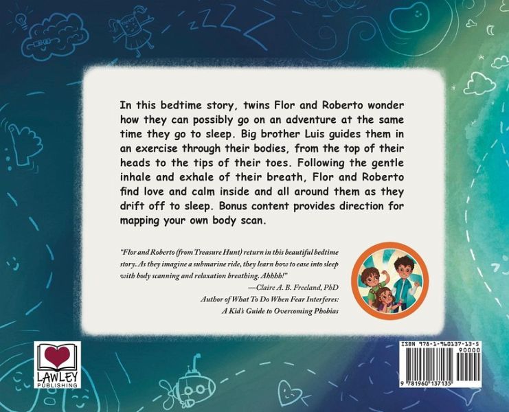 In this bedtime story, twins Flor and Roberto wonder how they can possibly go on an adventure at the same time as they go to sleep. Big brother Luis guides them in an exercise through their bodies, from the top of their heads to the tips of their toes. Following the gentle inhale and exhale of their breath, Flor and Roberto find love and calm inside and all around them as they drift off to sleep. Bonus content provides direction for mapping your own body scan.