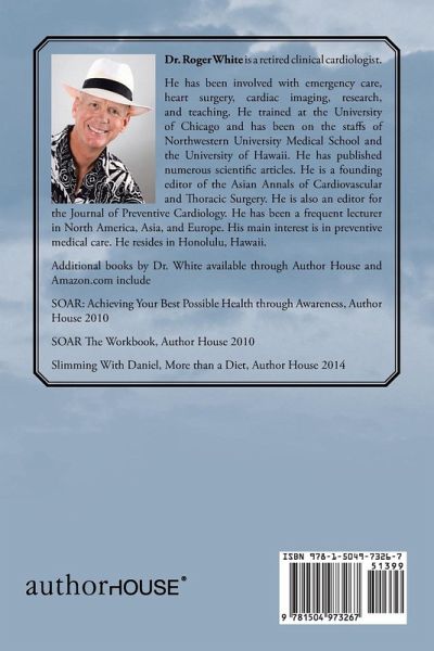 Dr. Roger White is a retired clinical cardiologist. He has been involved with emergency care, heart surgery, cardiac imaging, research, and teaching. He trained at the University of Chicago and has been on the staffs of Northwestern University Medical School and the University of Hawaii. He has published numerous scientific articles. He is a founding editor of the Asian Annals of Cardiovascular and Thoracic Surgery. He is also an editor for the Journal of Preventive Cardiology. He has been a frequent lecturer in North America, Asia, and Europe. His main interest is in preventive medical care. He resides in Honolulu, Hawaii. Additional books by Dr. White available through Author House and Amazon.com include SOAR: Achieving Your Best Possible Health through Awareness, Author House 2010 SOAR The Workbook, Author House 2010 Slimming With Daniel, More than a Diet, Author House 2014