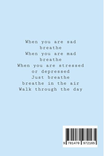 When you are sad breathe When you are mad breathe When you are stressed or depressed Just breathe Breathe in the air Walk through the day