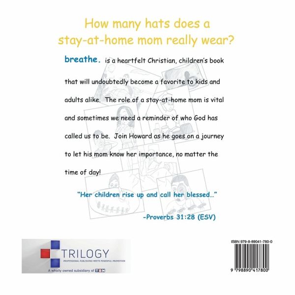 How many hats does a How many hats does a stay-at-home mom really wear? breathe. is a heartfelt Christian children's book that will undoubtedly become a favorite to kids and adults alike. The role of a stay-at-home mom is vital, and sometimes, we need a reminder of who God has called us to be. Join Howard as he goes on a journey to let his mom know her importance, no matter the time of day! "Her children rise up and call her blessed..."-Proverbs 31:28 (ESV).