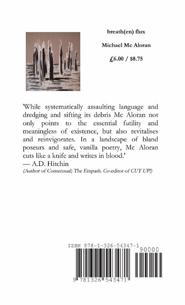 'While systematically assaulting language and dredging and sifting its debris Mc Aloran not only points to the essential futility and meaningless of existence, but also revitalises and reinvigorates. In a landscape of bland poseurs and safe, vanilla poetry, Mc Aloran cuts like a knife and writes in blood.' - A.D. Hitchin
