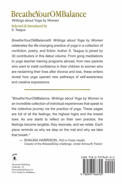BreatheYourOMBalance: Writings about Yoga Volume One celebrates the life-changing practice of yoga in fiction, nonfiction, and poetry. Author S. Teague is joined by 30 contributors in this debut volume. From gong meditations to yoga teacher training programs abroad, from new parents who want to instill confidence in their children to women who are reclaiming their lives after loss, these writers reveal how yoga created new pathways of self- awareness and creative expressions. "BreatheYourOMBalance: Writings about Yoga by Women is an incredible collection of individual experiences that speak to the collective journey via the practice of yoga. These pages are full of all the feelings; the highest highs and the lowest lows. As one starts to reflect on their own practice, the feelings become tangible, they resonate, and we relate. Each piece reminds us why we step on the mat and why we take that breath."—SHAUNA HARRISON, PhD in Public Health, creator of the #SweatADay challenge, Under Armour® Trainer "BreatheYourOMBalance is a pleasure to read. A book of writings by women, about women, it shows our struggles, challenges, and many victories. Through a yoga community on social media, these women have connected—and found the courage to share deeply personal experiences in the form of nonfiction, fiction, and poetry. They go deep into those dark places that make all of us vulnerable—places most of us have visited before—and overcome things like fear, anxiety, and self-loathing with breath and movement, love of oneself, and the light within. "I have anxiety, too, and through yoga I have learned to control it with my breath. There are a number of stories that are relatable to me. I felt connected to these women by reading their words, by feeling their fears, by experiencing their joy."—ROBIN MARTIN, 200-E-RYT in Yoga Medicine, @robinmartinyoga on Instagram "I’ll never forget when I first met S. Teague, or @saltlifepirateprincess on Instagram. Her account was intoxicating and one of the few places to see a community of almost all women supporting each other’s yoga practices and challenges. I immediately felt welcomed, even as a male practitioner, right into their community. Salty, and her friends, created a space where many could grow, expand, try new things, and even fail together—judgment free. A day wouldn’t go by when I didn’t check out what their community was up to. Now, seeing this book, BreatheYourOMBalance: Writings about Yoga by Women, come together is just icing on the cake. It is a perfect representation of the community that she attracted since day one. The love. The support. The family. It’s all here on these pages. It came together beautifully and is only a small representation of how powerful this community of women actually is."—HUNTER COOK, @hunterfitness on Instagram