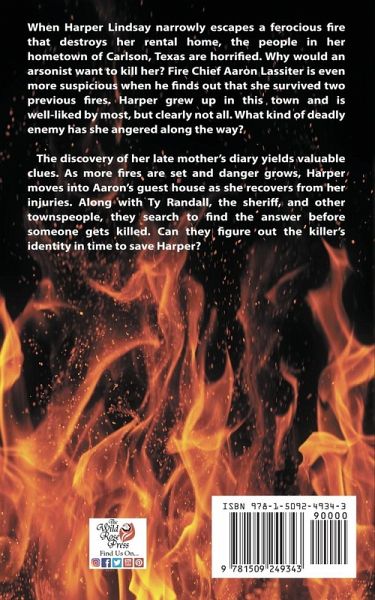 When Harper Lindsay narrowly escapes a ferocious fire that destroys her rental home, the people in her hometown of Carlson, Texas are horrified. Why would an arsonist want to kill her? Fire Chief Aaron Lassiter is even more suspicious when he finds out that she survived two previous fires. Harper grew up in this town and is well-liked by most, but clearly not all. What kind of deadly enemy has she angered along the way? The discovery of her late mother's diary yields valuable clues. As more fires are set and danger grows, Harper moves into Aaron's guest house as she recovers from her injuries. Along with Ty Randall, the sheriff, and other townspeople, they search to find the answer before someone gets killed. Can they figure out the killer's identity in time to save Harper?
