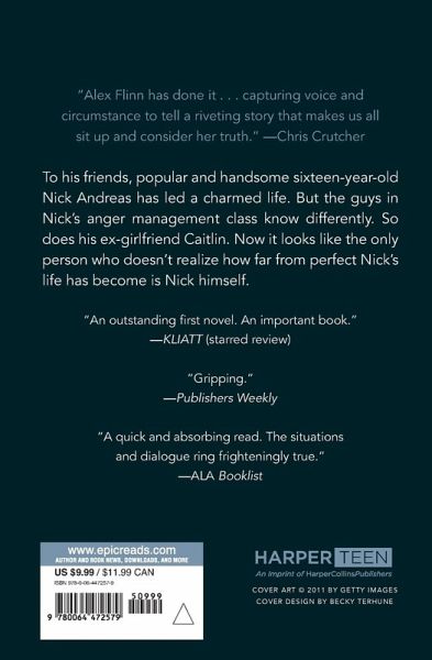 Don't miss this timely contemporary young adult novel from Alex Flinn, the #1 New York Times bestselling author of Beastly, about a teenage boy's struggle to break free from the cycle of abuse. "Gripping." --Publishers Weekly Intelligent, popular, handsome, and wealthy, sixteen-year-old Nick Andreas is pretty much perfect--on the outside, at least. What no one knows--not even his best friend--is the terror and anger that Nick faces every time he is alone with his father. Then he and Caitlin fall in love, and Nick thinks his problems are over. Caitlin is the one person he can confide in, the only person who understands him. But when Nick's anger and jealousy overtake him, things begin to spiral out of control and Nick realizes that he's more his father's son than he wants to be. Now Nick must confront his inner demons to stop the history of violence from repeating itself. Winner of the Black-Eyed Susan Award An ALA Top 10 Best Book for Young Adults An International Reading Association Young Adult Choices List Pick A New York Public Library Book for the Teen Age Pick