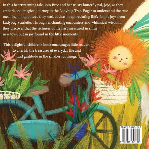 In this heartwarming tale, join Bree and her trusty butterfly pal, Jojo, as they embark on a magical journey to the Ladybug Tree. Eager to understand the true meaning of happiness, they seek advice on appreciating life's simple joys from Ladybug Scarlette. Through enchanting encounters and whimsical wisdom, they discover that the richness of life isn't measured in shiny new toys, but in joy found in the little moments. This delightful children's book encourages little readers to cherish the treasures of everyday life and find gratitude in the smallest of things.