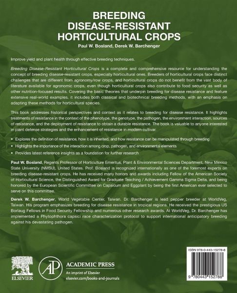 Breeding Disease-Resistant Horticultural Crops is a complete and comprehensive resource for understanding the concept of breeding disease resistant crops, especially horticultural crops. Breeders of horticultural crops face distinct challenges that are different from agronomy/row crops, and these crops do not benefit from the vast body of literature available for agronomic crops. This book covers the basic theories that underpin breeding for disease resistance and features extensive real-world examples. Both classical and biotechnical breeding methods are covered, with an emphasis on how these methods are adapted for horticultural species. Presented in a logical flow for the reader, this book addresses historical perspectives and context as it relates to breeding for disease resistance. It highlights treatments of resistance in the context of the phenotype, the genotype, the pathogen, the environment interaction, sources of resistance, and the deployment of resistance to obtain a durable resistance.