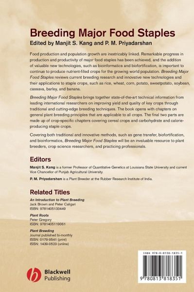 Food production and population growth are inextricably linked. Remarkable progress in production and productivity of major food staples has been achieved, and the addition of valuable new technologies such as bioinformatics and biofortification are important to continue to produce nutrient-filled crops for the growing world population. Breeding Major Food Staples reviews current breeding research and innovative new technologies and their applications to staple crops such as rice, wheat, corn, potato, sweet potato, soybean, cassava, barley, and banana. Breeding Major Food Staples brings together state-of-the-art technical information from leading international researchers on improving yield and quality of key crops through traditional and cutting-edge breeding techniques. The book opens with chapters on general plant breeding principles that are applicable to all crops. The final two parts are made up of crop specific chapters covering cereal crops and carbohydrate and calorie-producing staple crops. Covering both traditional and innovative methods such as gene transfer, biofortification and bioinformatics, Breeding Major Food Staples will be an invaluable resource to plant breeders, crop science researchers, and practicing professionals.