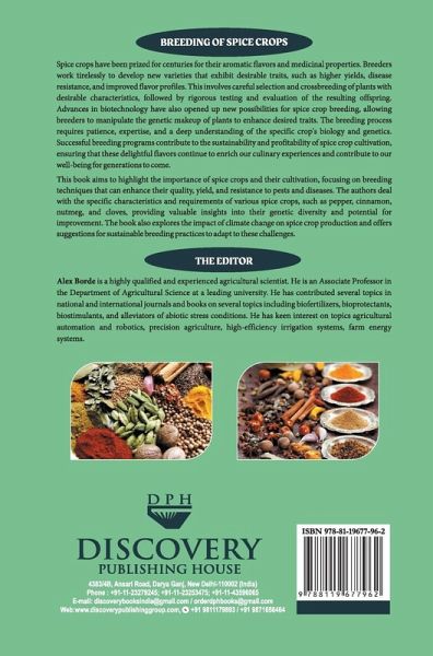 Spice crops have been prized for centuries for their aromatic flavors and medicinal properties. Breeders work tirelessly to develop new varieties that exhibit desirable traits, such as higher yields, disease resistance, and improved flavor profiles. This involves careful selection and crossbreeding of plants with desirable characteristics, followed by rigorous testing and evaluation of the resulting offspring. Advances in biotechnology have also opened up new possibilities for spice crop breeding, allowing breeders to manipulate the genetic makeup of plants to enhance desired traits. The breeding process requires patience, expertise, and a deep understanding of the specific crop's biology and genetics. Successful breeding programs contribute to the sustainability and profitability of spice crop cultivation, ensuring that these delightful flavors continue to enrich our culinary experiences and contribute to our well-being for generations to come. This book aims to highlight the importance of spice crops and their cultivation, focusing on breeding techniques that can enhance their quality, yield, and resistance to pests and diseases.