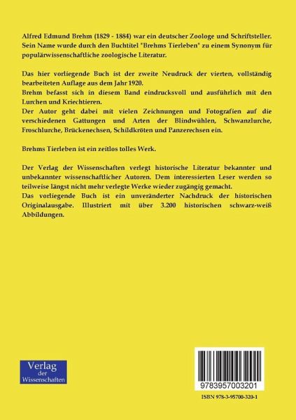 Brehm befasst sich in diesem Band eindrucksvoll und ausführlich mit den Lurchen und Kriechtieren.