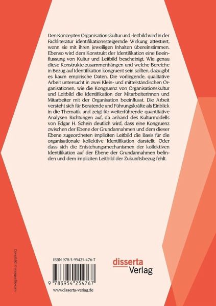 Den Konzepten Organisationskultur und -leitbild wird in der Fachliteratur identifikationssteigernde Wirkung attestiert, wenn sie mit ihren jeweiligen Inhalten übereinstimmen. Ebenso wird dem Konstrukt der Identifikation eine Beeinflussung von Kultur und Leitbild bescheinigt. Wie genau diese Konstrukte zusammenhängen und welche Bereiche in Bezug auf Identifikation kongruent sein sollten, dazu gibt es kaum empirische Daten. Die vorliegende, qualitative Arbeit untersucht in zwei Klein- und mittelständischen Organisationen, wie die Kongruenz von Organisationskultur und Leitbild die Identifikation der Mitarbeiterinnen und Mitarbeiter mit der Organisation beeinflusst. Die Arbeit versteht sich für Beratende und Führungskräfte als Einblick in die Thematik und zeigt für weiterführende quantitative Analysen Richtungen auf, da anhand des Kulturmodells von Edgar H. Schein deutlich wird, dass eine Kongruenz zwischen der Ebene der Grundannahmen und dem dieser Ebene zugeordneten impliziten Leitbild die Basis für die organisationale kollektive Identifikation darstellt. Oder dass sich die Entstehungsmechanismen der kollektiven Identifikation auf der Ebene der Grundannahmen befinden und dem impliziten Leitbild der Zukunftsbezug fehlt.