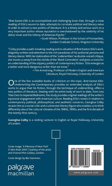 "Colby provides a path-breaking reading and re-situation of Bret Easton Ellis s work, elegantly written and attentive to the rich paradoxes of his authorial persona and literary stance.With her elaboration of the underwritten as double-voiced critique, she moves us away from the clichés of the Blank Generation and gives us tools for an understanding of the slippery politics of contemporary fiction. Ellis emerges as a better and more dangerous writer than we know." -Tim Armstrong, Professor of Modern English and American Literature, Royal Holloway, University of London