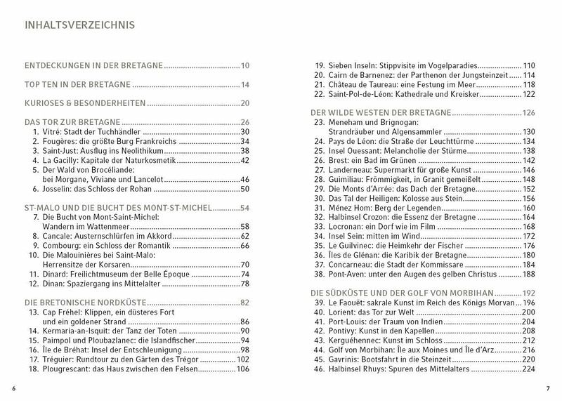 Seit Langem ist die Bretagne eine beliebte Ferienregion mit wunderbaren Stränden und romantischen Orten am Meer. Manche Attraktion ist weltbekannt: der Mont-Saint-Michel an der Pforte zur Bretagne, einst Pilgerziel der französischen Könige, heute der Reisenden aus aller Welt, die Hafenstadt Saint-Malo, Ausgangspunkt etlicher Entdeckungsreisen in die Neue Welt, die geheimnisvollen steinzeitlichen Monumente in Carnac. Andere Schönheiten schlummern eher im Verborgenen: Dorfkirchen mit Wand- und Deckengemälden vom Feinsten und den Skulpturen der Kalvarienberge, Salzgärten und Moorlandschaften, spektakulär gelegene Burgen und Festungen, die von weniger friedlichen Zeiten berichten.Die 50 Orte und Attraktionen in der Bretagne, die Ihnen der Autor in diesem Buch vorstellt, bereichern jedes Reiseprogramm. Sei es, dass Sie mit dem Auto gemütlich von Ort zu Ort reisen oder längere Zeit in einem Ferienhaus verbringen und die nähere und weitere Umgebung etwas besser kennenlernen möchten. Die Halbinsel hat vieles zu bieten - Felsenküsten und Sandstrände ohne Ende, baumlose Inseln vor der Küste und schattige Wege am Ufer alter Kanäle, malerische Häfen und Orte, die Geschichte atmen, inspirierende Wander- und Fahrradwege. Dazu eine erstklassige Küche mit zahllosen Spezialitäten aus dem Meer. Und überall sind Sie herzlich willkommen.