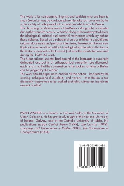 The historical and societal background of the language is succinctly delineated and points of orthographical contention are discussed, each in turn, so that their correlation to the spoken varieties of Breton can be judged by the reader.