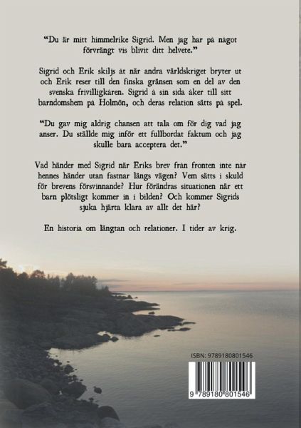 Sigrid och Erik skiljs åt när andra världskriget bryter ut och Erik reser till den finska gränsen som en del av den svenska frivilligkåren. Sigrid å sin sida åker till sitt barndomshem på Holmön, och deras relation sätts på spel. Vad händer med Sigrid när Eriks brev från fronten inte når hennes händer utan fastnar längs vägen? Vem sätts i skuld för brevens försvinnande? Hur förändras situationen när ett barn plötsligt kommer in i bilden? Och kommer Sigrids sjuka hjärta klara av allt det här? En historia om längtan och relationer. I tider av krig.