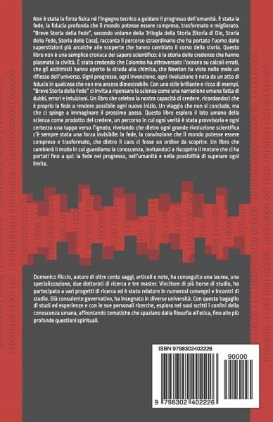 Non è stata la forza fisica né l'ingegno tecnico a guidare il progresso dell'umanità. È stata la fede, la fiducia profonda che il mondo potesse essere compreso, trasformato e migliorato. "Breve Storia della Fede", secondo volume della Trilogia della Storia (Storia di Dio, Storia della Fede, Storia delle Cose) e trentaduesimo de "L'Opera", racconta il percorso straordinario che ha portato l'uomo dalle superstizioni più arcaiche alle scoperte che hanno cambiato il corso della storia. Questo libro non è una semplice cronaca del sapere scientifico: è la storia delle credenze che hanno plasmato la civiltà. È stato credendo che Colombo ha attraversato l'oceano su calcoli errati, che gli alchimisti hanno aperto la strada alla chimica, che Newton ha visto nelle mele un riflesso dell'universo. Ogni progresso, ogni invenzione, ogni rivoluzione è nata da un atto di fiducia in qualcosa che non era ancora dimostrabile. Con uno stile brillante e ricco di esempi, "Breve Storia della Fede" ci invita a ripensare la scienza come una narrazione umana fatta di dubbi, errori e intuizioni. Un libro che celebra la nostra capacità di credere, ricordandoci che è proprio la fede a rendere possibile ogni nuovo inizio. Un viaggio che non si conclude, ma che ci spinge a immaginare il prossimo passo. Questo libro esplora il lato umano della scienza come prodotto del credere, un percorso in cui ogni verità è stata provvisoria e ogni certezza una tappa verso l'ignoto, rivelando che dietro ogni grande rivoluzione scientifica c'è sempre stata una forza invisibile: la fede, la convinzione che il mondo potesse essere compreso e trasformato, che dietro il caos ci fosse un ordine da scoprire. Un libro che cambierà il modo in cui guardiamo la conoscenza, invitandoci a riscoprire il motore che ci ha portati fino a qui: la fede nel progresso, nell'umanità e nella possibilità di superare ogni limite.