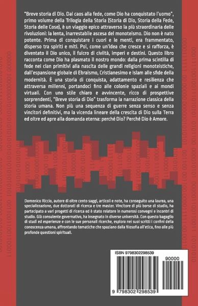 "Breve storia di Dio. Dal caos alla fede, come Dio ha conquistato l'uomo", primo volume della Trilogia della Storia (Storia di Dio, Storia della Fede, Storia delle Cose) e trentunesimo de "L'Opera", è un viaggio epico attraverso la più straordinaria delle rivoluzioni: la lenta, inarrestabile ascesa del monoteismo. Dio non è nato potente. Prima di conquistare i cuori e le menti, era frammentato, disperso tra spiriti e miti. Poi, come un'idea che cresce e si rafforza, è diventato il Dio unico, il fulcro di civiltà, imperi e destini. Questo libro racconta come Dio ha plasmato il nostro mondo: dalla prima scintilla di fede nei clan primitivi alla nascita delle grandi religioni monoteistiche, dall'espansione globale di Ebraismo, Cristianesimo e Islam alle sfide della modernità. È una storia di conquista, adattamento e resilienza che attraversa millenni, portandoci fino alle colonie spaziali e ai mondi virtuali. Con uno stile chiaro e avvincente, ricco di prospettive sorprendenti, "Breve storia di Dio" trasforma la narrazione classica della storia umana. Non più una sequenza di guerre senza senso e senza vincitori definitivi, ma la vicenda lineare della crescita di Dio sulla Terra ed oltre ed apre alla domanda eterna: perché Dio? Perché Dio è Amore.