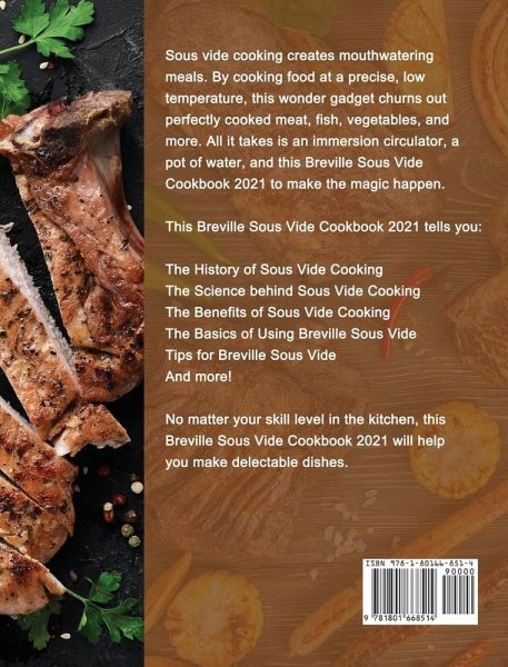 Sous vide cooking creates mouthwatering meals. By cooking food at a precise, low temperature, this wonder gadget churns out perfectly cooked meat, fish, vegetables, and more. All it takes is an immersion circulator, a pot of water, and this Breville Sous Vide Cookbook 2021 to make the magic happen. This Breville Sous Vide Cookbook 2021 tells you: The History of Sous Vide Cooking The Science behind Sous Vide Cooking The Benefits of Sous Vide Cooking The Basics of Using Breville Sous Vide Tips for Breville Sous Vide And more! No matter your skill level in the kitchen, this Breville Sous Vide Cookbook 2021 will help you make delectable dishes.