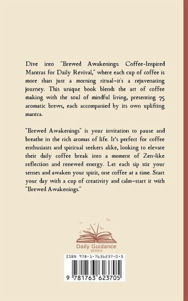 Welcome to "Brewed Awakenings: Coffee-Inspired Mantras for Daily Revival," where your coffee cup is your crystal ball and every sip is a spell! This isn't just any coffee book; it's a magic carpet ride through the world of coffee, infused with a dash of spirituality and a sprinkle of fun. Here, brewing coffee becomes a whimsical ritual, inviting the coffee-drinking spirits to dance around your kitchen. Imagine a book where each of the 84 coffee recipes is a playful invocation, summoning the aromatic essences and weaving them with words of wisdom. As you inhale the rich bouquets of each blend, you're not just making coffee; you're meditating, floating on clouds of caffeine and calm. "Brewed Awakenings" is your guide to turning the daily grind into a joyful jig. It's perfect for the mystic maverick, the spiritual barista, and anyone who believes that a good cup of coffee can indeed be a portal to another realm. So, grab your favorite mug and prepare to sip, savor, and be spirited away! Caffeinated Chronicles pages at the end of this book are yours for journaling your caffeinated fueled inspirations, thoughts and creativity.