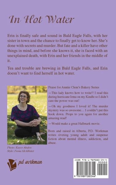 From USA Today Bestselling Author, P.D. Workman! Erin is in hot water again! Erin is finally safe and sound in Bald Eagle Falls, with her sister in town and the chance to finally get to know her. She's done with secrets and murder. But fate and a killer have other things in mind, and before she knows it, she is faced with an unexplained death, with Erin and her friends in the middle of it. Tea and trouble are brewing in Bald Eagle Falls, and Erin doesn't want to find herself in hot water. ¿¿¿¿Erin and Vic have their hands full just going through Auntie Clem's old paperwork and cookbooks. But murder won't leave them alone, even though the church die-hards think all this murder business is because of them and it disturbs the hitherto peaceful rural ambience. Like baking mysteries? Cats, dogs, and other pets? Award-winning and USA Today Bestselling Author P.D. Workman brings readers back to small town Bald Eagle Falls for another culinary cozy mystery to be solved by gluten-free baker Erin Price and her friends. Have your gluten-free cake and eat it too. Sink your teeth into this sweet treat now!