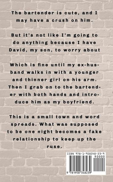 The bartender is cute, and I may have a crush on him. But it's not like I'm going to do anything because I have David, my son, to worry about Which is fine until my ex-husband walks in with a younger and thinner girl on his arm. Then I grab on to the bartender with both hands and introduce him as my boyfriend. This is a small town and word spreads. What was supposed to be one night becomes a fake relationship to keep up the ruse. Catching feelings, though? That can't happen.