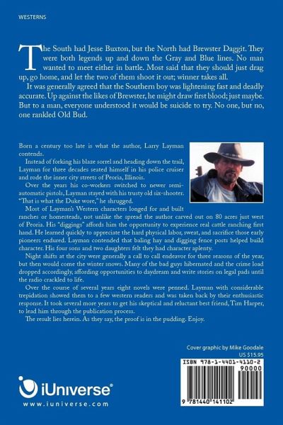 The South had Jesse Buxton, but the North had Brewster Daggit. They were both legends up and down the Gray and Blue lines. No man wanted to meet either in battle. Most said that they should just drag up, go home, and let the two of them shoot it out; winner takes all. It was generally agreed that the Southern boy was lightening fast and deadly accurate. Up against the likes of Brewster, he might draw first blood; just maybe. But to a man, everyone understood it would be suicide to try. No one, but no, one rankled Old Bud.