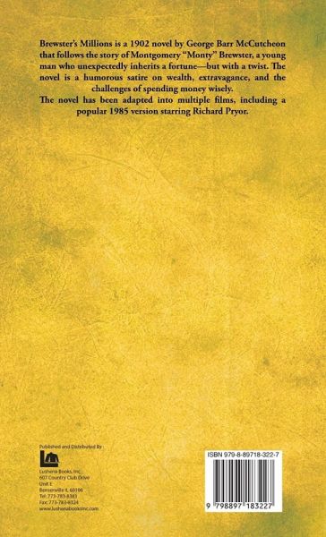 Brewster's Millions is a 1902 novel by George Barr McCutcheon that follows the story of Montgomery "Monty" Brewster, a young man who unexpectedly inherits a fortune-but with a twist. The novel is a humorous satire on wealth, extravagance, and the challenges of spending money wisely. The novel has been adapted into multiple films, including a popular 1985 version starring Richard Pryor.